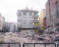 aklaşık bir yıl önce İstanbul Büyükşehir Belediye Başkanı Kadir Topbaş, 'mutlaka yıkılacak' diyerek Zeytinburnu'ndaki 2 bin 295 konuta işaret etmişti. Aradan geçen sürede ne yazık ki bu binalar ne boşaltıldı ne de herhangi bir tahliye oldu. Halen hasarlı bir çok binada 'bize bir şey olmaz' diyenler ya da başka bir yere taşınacak maddi imkanı olmadığı için yaradana sığınanlar ikamet ediyorlar. Ancak geçtiğimiz hafta gecenin yarısında kibrit kutusu gibi yıkılan bir bina, hem Zeytinburnu'nda hem de 1999 yılındaki Marmara Depremi'nde evleri hasar görenlerin bir kez daha silkinerek kendine gelmesine neden oldu. Biz de Zeytinburnu'da facianın yaşandığı Çırpıcı'ya gittik. Polis tarafından binanın etrafı çevrilmiş. Yastıklar, giysiler, ayakkabılar ortalığa saçılmış. Yıkılırken yandaki binaya da hasar verdiği için orası da boşaltılmış. Can korkusu ile balkonlarda çamaşırlar asılı kalmış. Konu komşuya sığınanlar şimdi evlerini uzaktan seyrediyor.