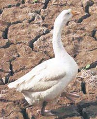 Çin'in güneybatısındaki Sichuan bölgesinde, bu sevimli kazın yürüdüğü yerde eskiden bir gölet vardı. Ancak uzun süreli kuraklık ve yüksek sıcaklıklar nedeniyle gölet tamanen kurudu ve geriye de çatlamış topraktan başka bir şey kalmadı. Susuzluk yüzünden tam 4 milyon insan bölgeyi terk ederek yağış alan yerlere taşındı.