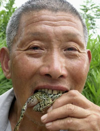 Kurbağa ve fare yiyerek öksürük ve şiddetli karın ağrısından kurtulduğunu iddia eden bir Çinli, 40 yıldır yediği bu 'gıdaların' kendisini daha güçlü hale getirdiğini öne sürdü...