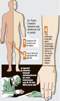 İspanya'da bugüne kadar benzeri yapılmamış bir ameliyat gerçekleştirildi. Sol eli olmayan hastanın sağ tarafının da felç olması üzerine "sağ eli sol koluna" dikildi. 63 yaşındaki ismi açıklanmayan hastanın 40 yıl önce bir kazada kaybettiği sol eli yerine dikilen sağ elinin parmaklarının yerleri de ameliyatla değiştirildi. 29 Nisan'da gerçekleşen ameliyatın başarılı olduğunu açıklayan İspanyol doktorlar, bu hafta hastaneden taburcu olacak hastalarının 3 yıl önce felç geçirdiğini ve yaşam kalitesi için bu alışılmadık operasyona karar verildiğini belirtti. Ameliyatı gerçekleştiren Dr. Pedro Cavadas, yerel haber ajanslarına yaptığı açıklamada, "Hastanın sağlığı şu anda çok iyi. Birkaç ay içinde elini rahat bir şekilde kullanabilecek" dedi. İspanya'nın Valencia kentinde gerçekleşen ameliyat hakkında konuşan doktorun kız kardeşi ve Pedros Vakfı'nın üyesi Virginia Cavadas, "Hasta hiçbir şey yapamıyordu. En basit bir şeyi yapabilmesi için yardıma ihtiyacı vardı. Doktor Pedro Cavadas da bir donör bulmak yerine elin yerini değiştirme kararı aldı" dedi. Doktor Cavadas tam 13 saat süren ameliyatın ardından estetik açıdan da sol elden hiçbir farkı olmayan sağ el yaratmayı başardı.