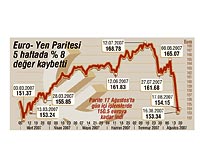 Japon para birimi Yen'in önlenemez yükselişi, carry trade işlemlerini neredeyse bitirdi. "Faizi düşük ülkelerin para biriminden borçlanarak faizi yüksek ülkelerin varlıklarına yatırım yapmak" anlamına gelen carry trade, özellikle Euro ve sterlin karşısındaki keskin düşüş sonrası büyük yara aldı. Euro-Yen paritesi 150.5'e kadar düştü. Parite Cuma gününü 154.15 Euro'dan kapadı. Paritenin en yüksek değerine ulaştığı 12 Temmuz'dan bu yana parite yüzde 8 değer kaybetmiş oldu.