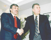 FP'deki yenilikçi kanadın başındaki isim Abdullah Gül CHP Genel Başkanı Deniz Baykal'a dün sürpriz bir ziyaret gerçekleştirdi. Geçmişte CHP içinde "hizipçilikle" suçlanan Baykal, görüşmenin başında esprili bir üslupla "Sizi izliyorum. Daha önce benzer çalışmalar yapmış biri olarak yardımcı olabilirim" dedi.