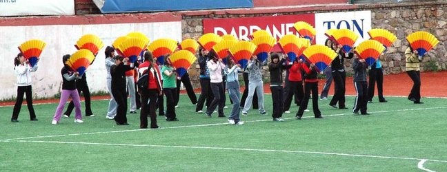 Çanakkale'de 19 Mayıs Atatürk'ü Anma Gençlik ve Spor Bayramı'nda gösteri yapacak öğrenciler 18 Mart sentetik çim sahasında provalarına başladı...
