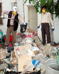 Görevliler, üç odasından 5 kamyon çöp çıkan evin daha sonra ilaçlanacağını kaydettiler.