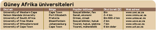Bazı özel üniversiteler hariç, Güney Afrika okullarının tamamı YÖK tarafından tanınıyor. Ülkenin hemen her üniversitesinde gençlerden beklenen şartlar aynı. Okullara kayıt yaptırmak için lise diploması ve not ortalamasının yanı sıra IELTS için 7, TOEFL için 570 puan isteniyor. Bu seviyede İngilizce bilmeyenler de Güney Afrika'daki sayısız dil okullarından birisini seçerek, lisanını geliştirme imkanına sahip.